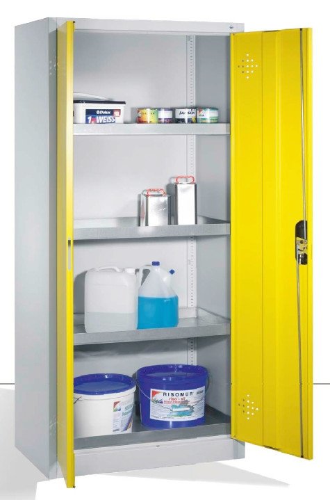 Szafa metalowa na chemikalia oraz do przechowywania substancji niebezpieczynych takich jak np: rozpuszalniki, oleje, nawozy, tłuszcze, substancje chemiczne, kwasy itp. Szafa ekologiczna z wanienkami ( półki w kształcie wanienek) zabezpiecza przed poważnymi skutkami zanieczyszczeń. Umożliwia profesjonalne przechowywanie substancji niebezpiecznych zgodnie ze stosownymi przepisami. Ekologiczna szafa metalowa posiada półki wanienki wykonane z ocynkowanej stali o pojemności 10L lub 20L. , nośność wanienek 80kg.